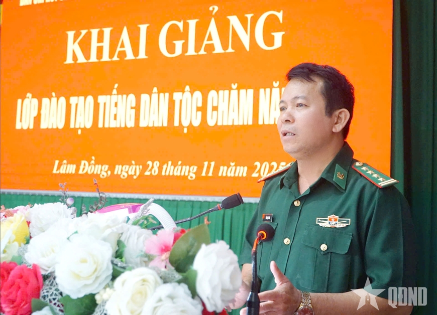 Cùng ngày, Ban chỉ huy Bộ đội Biên phòng tỉnh Lâm Đồng phối hợp với Viện Khoa học Công nghệ và Nghiên cứu giáo dục tổ chức khai giảng lớp đào tạo tiếng dân tộc Chăm năm 2025.