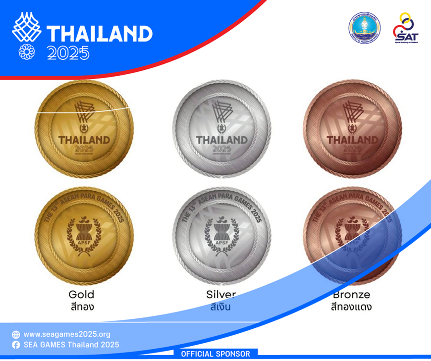 Tiến sĩ Kongsak cũng lưu ý rằng huy chương ASEAN Para Games, sẽ được trao tại ASEAN Para Games 13 tại Nakhon Ratchasima (diễn ra từ ngày 20 đến 26-1-2026) sẽ tuân theo cùng một ngôn ngữ thiết kế tổng thể giống SEA Games 33; chỉ khác biệt ở biểu tượng và dấu hiệu nhận dạng trên huy chương.
