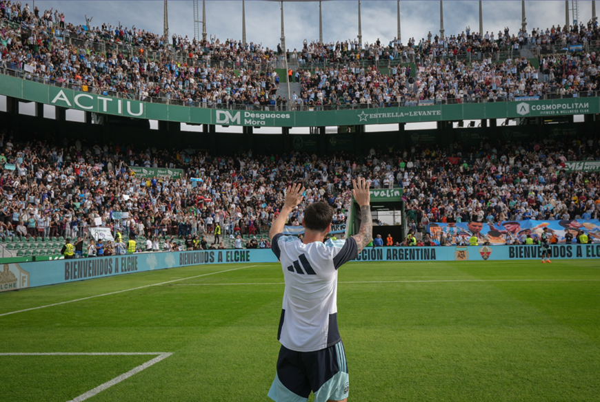 Messi được đông đảo cổ động viên chào đón, trong buổi tập trước trận giao hữu giữa Argentina và Angola, tại Elche (Tây Ban Nha). Ảnh: Getty |