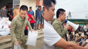 Hình ảnh nam ca sĩ khuôn từng bao gạo, tự tay kiểm tra từng món quà, nhu yếu phẩm cứu trợ của bà con khiến ai nấy không khỏi cảm mến trước tình cảm, tinh thần tương thân tương ái của Tuấn Hưng.